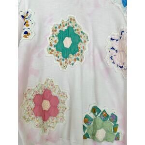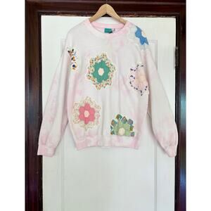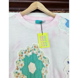 This sweet upcycled sweatshirt is made by Portland, OR textile designer Chloe Cox. Created using handmade vintage quilt blocks and a vintage hand-dyed bleached crewneck sweatshirt. NWT. Originally $186