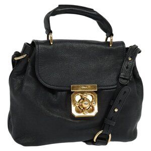 Chloe Elsie Hand Bag Leather 2way Black Gold Auth