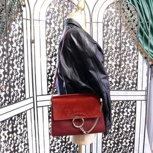 Chloe Faye Shoulder Bag Leather and Suede Medium Red