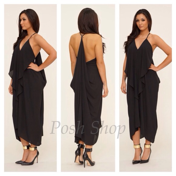Gorgeous flowing dress with a open back. Look beautiful effortlessly in this amazing dress. Comes in a shorter version & many other colors!! Buy at www.poshshop.com