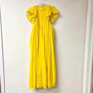 Chloe Flutter Sleeve Pleated Virgin Wool Midi Dress Truly Yellow Women's Size 36