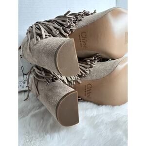 Chloe Fringed Tasseled Suede Ankle Open Toes boots Size UE 37
