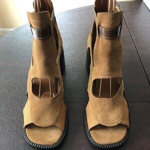 Chloe Gail Brown (Cognac) Suede Ankle Sandals Size 40 US 9 ($745) NIB