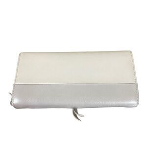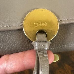 This gray leather Chloe Indy Long Wallet with flap is a stylish addition to any woman's accessory collection. The wallet features a button and zipper closure with the Chloe logo on the front. The solid pattern and size small make it a versatile piece that can be used for any occasion. Made from high-quality leather, this wallet is durable and long-lasting.