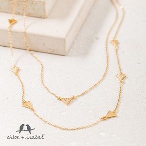 Pave Triangle 2-in-1 Convertible Layering Necklace set in a versatile shiny 12k gold plating. www.chloeandisabel.com/boutique/divinebutterfly