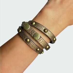 Chloe + Isabel Bronze Brown Leather Triple Wrap Studded Bracelet Gold Snaps