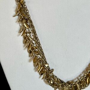 Mother-of-Pearl inlay, silver shade Swarovski crystal, gold metal fringe, worn 12k gold + antique brass-plated, lobster clasp, 2” extender. Comes in a C+I canvas gift pouch. Hypoallergenic, nickel-free + lead safe. From my smoke-free home.