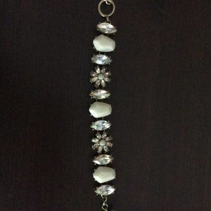 This eye-catching toggle bracelet features an alluring array of semi-precious pale pink jade + sparkling golden + light peach crystal.