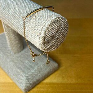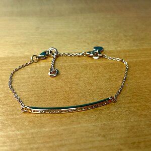 Add style to your accessory collection with the Chloe + Isabel Pavé Curved Bar Bracelet. This beautiful bracelet features a curved bar set with sparkling clear crystals. The shiny gold-tone rhodium plating adds a touch of luxury, making it an excellent choice for any outfit, whether for day or night.