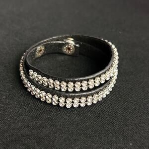 Chloe + Isabel Leather Double Wrap Rhinestone Black Bracelet Adjustable