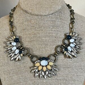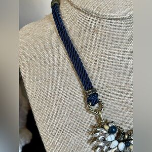 Semi-precious howlite, navy + light pink resin, antique brass-plated, lobster clasps, 16” length with chain back option, 18” with rope back option, 2” extenders. Comes in a C+I gift box. Hypoallergenic, nickel-free + lead safe. From my smoke-free home.