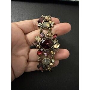 Chloe & Isabel Statement Bracelet Multi-Color Stones Floral Cluster Gold Tone