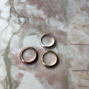 Comes with one silver, one gold, and one copper colored ring. Size 7!