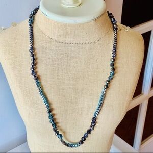 Chloe + Isabel blue cord silver button closure glass faceted crystal beads