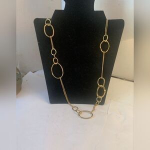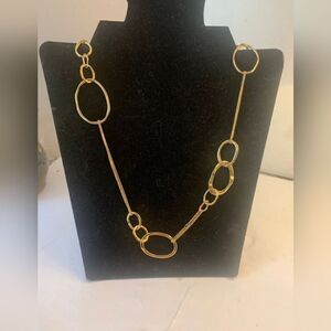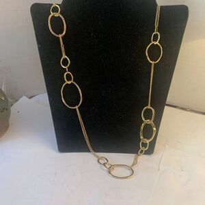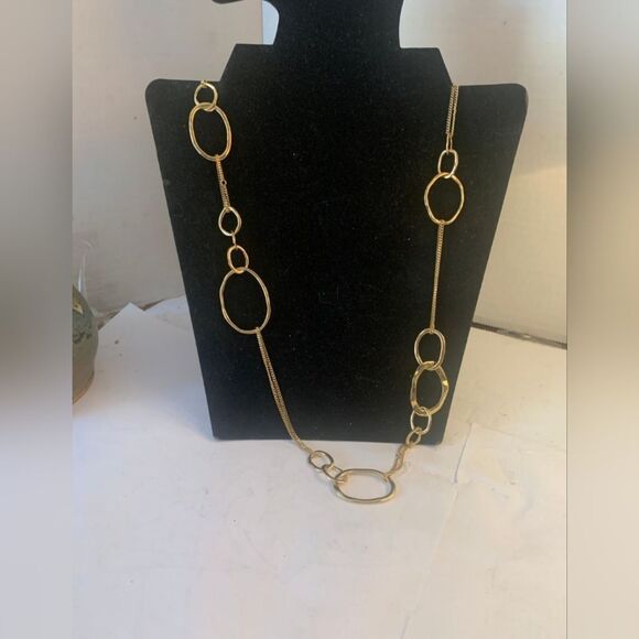 Introducing a timeless piece of elegance: the Chloe + Isabel 36" Gold-Tone Circle Chain Necklace. This stunning accessory features a harmonious blend of organic circular links in various sizes, delicately connected by fine dual gold-tone chains. The asymmetry and playful arrangement of the open circles add a contemporary touch, while the golden finish exudes luxury and sophistication.