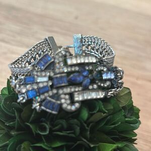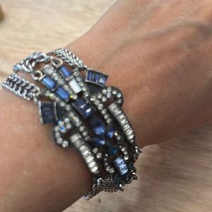 Chloe + Isabelle silver and sapphire color Art Deco looking chain bracelet multitier