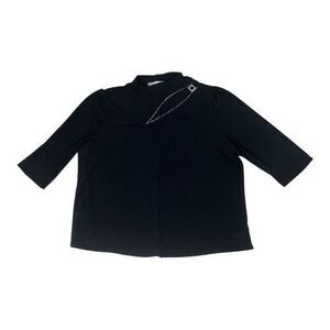 Chloe & Jasmine Black 3/4-Sleeve Blouse Plus Size 2X Cut Out Rhinestone Stretch