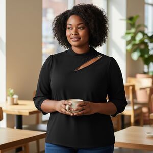 Chloe & Jasmine Black 3/4-Sleeve Blouse Plus Size 2X Cut Out Rhinestone Stretch Turtleneck