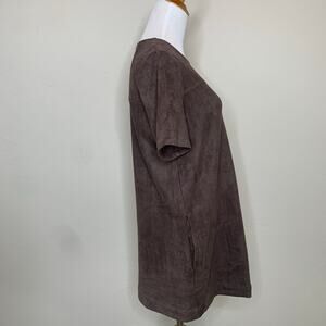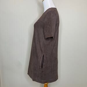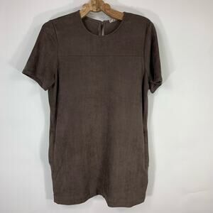 Chloe K Brown Suede Mini Shift Dress Pockets Small