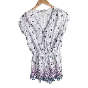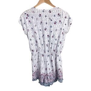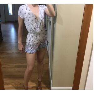 Really cute and comfy romper! VGUC, no flaws or significant signs of wear. Lightweight and flirty. Snap to keep front closed. Size Small. 1.5" inseam.See photos for details and measurements.