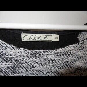 Chloe K Sweater Black Gray Neutral Color Block Geometric Knit Comfy Stretch
