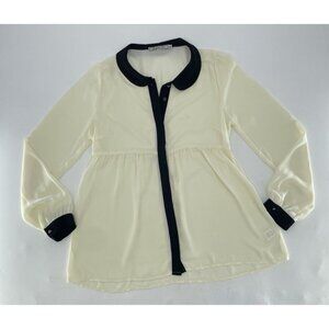 Chloe K Women’s Ivory Sheet Black Collared Blouse Size M Preppy Gothic Feminine
