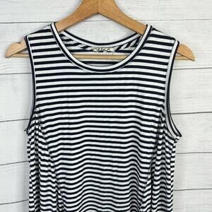 Chloe K Womens size Medium Tunic A Lined Striped Flowy Hem Blue White Tank Top