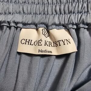 Chloe Kristyn Woman size M New Blue Satin Traci Skirt Mini Length Faux Wrap NWOT