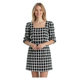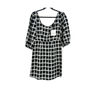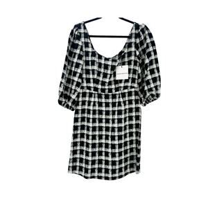 Chloe Kristyn Women's Scoop Neck Checked Mini Dress Black/White Size 4 NWT