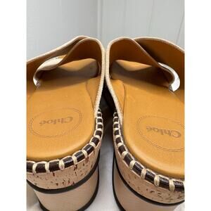 Chloe LAIA Biscotti Tan Suede Platform Slide Criss Cross Mule Sandal Heel 10 41