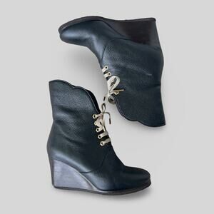 Chloe lace up wedge boots. They hit mid-calf and are a black pebbled leather.