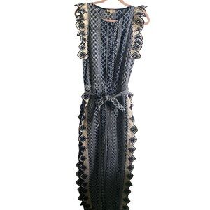 Chloe Laetitia Ruffle Detail Embroidered Eyelet Blue Cream Belted Jumpsuit Sz S
