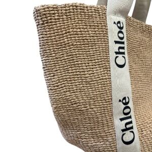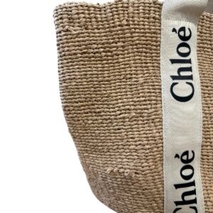 The Chloe logo ribbon details the natural fiber for graphic contrast & a signature touch.