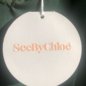 Beautiful See By Chloe dress in a sheer crepe fabric. Has attached slip. It has ruffles of self laser cut fabric. Very nice hand and drape. Pictures do not do it justice as it looks amazing on! This amazing dress is NWT - size 38.
