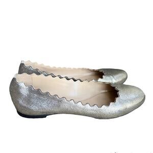 Chloe Lauren Ballerina Flats Scalloped Edge Metallic Silver 36 5.5