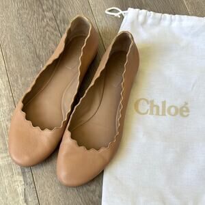 Chloe Lauren Scalloped Ballet Flats Taupe Size 36 / 6