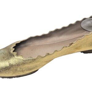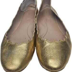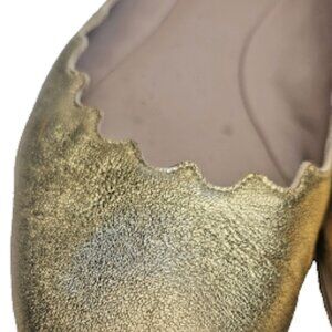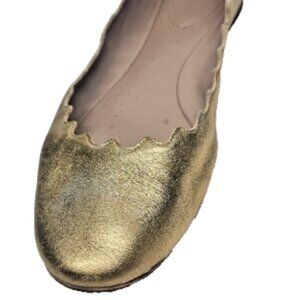 Chloe Lauren Scalloped Ballet Flats in Metallic Gold Leather – Size 35.5