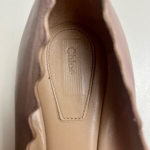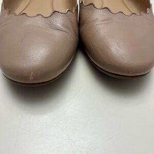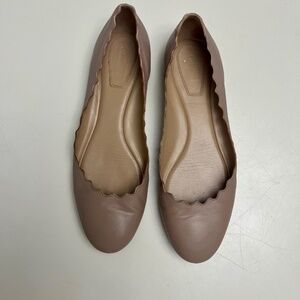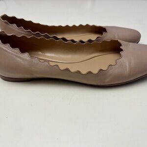 Chloe Lauren Scalloped Edge Ballet Flats In Pink Tea, gently worn, small scuff mark on right toe and inside of left heel (see photos).