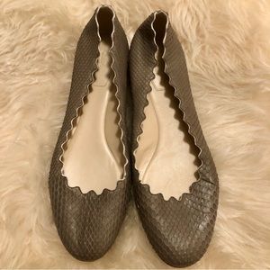 Chloe Lauren Scalloped Snakeskin Leather, size 7 1/2 Women’s Flats
