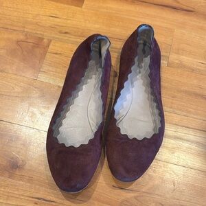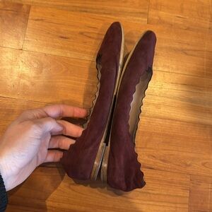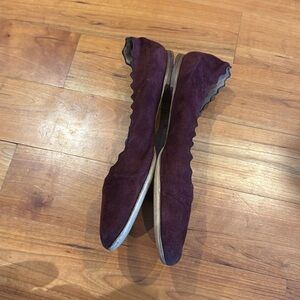 Chloe Lauren Suede Flats sz 36.5 Ballerinas burgundy wine leather scalloped 6.5
