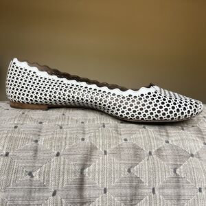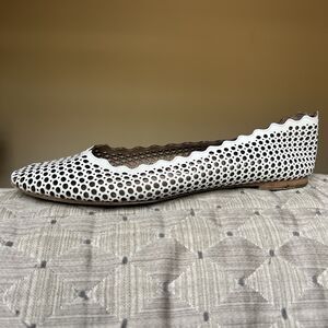 Chloe Lauren White Laser Cut Leather Ballet Flats Women EU 39 US 8.5 - 9 Scallop