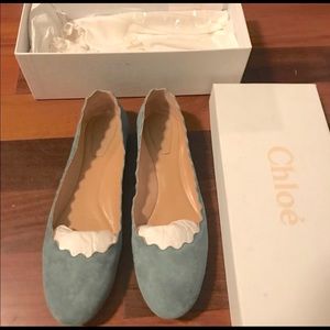 Beautiful blue suede scalloped ballet flat. The Chloe Lauren ballet flat.
