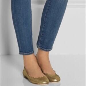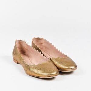 Chloe Lauren metallic gold scalloped flats Sz 36.5