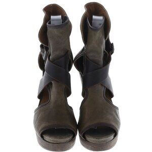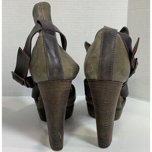 ๐ Chloe Leather Gladiator Heels | Wood Platform | Green Brown Strappy 38.5