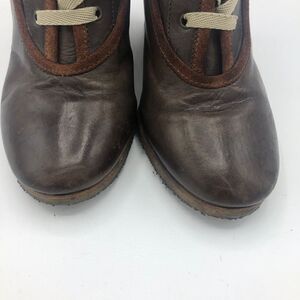 Chloe Leather Wedge Boots Socks Brown Lace Up 38.5