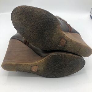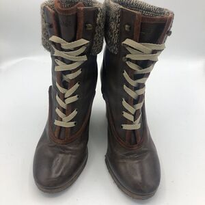 Chloe Leather Wedge Boots Socks Brown Lace Up 38.5 38 1/2 8.5 Winter Fall