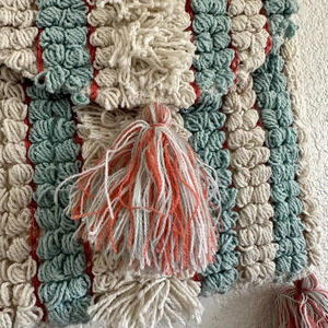 Vibrant multicolored with fringe and a variety of stitch textures