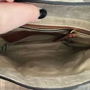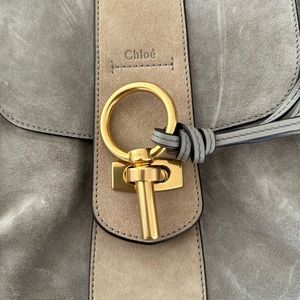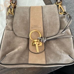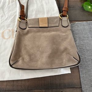 Chloe Lexa Crossbody Bag Suede Leather Medium Flap Key Taupe Beige Gray Gold HW