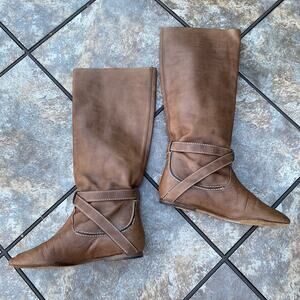 Chloe Light Brown Knee High Leather Riding Boots Mid Calf EU 37/7 Buckle