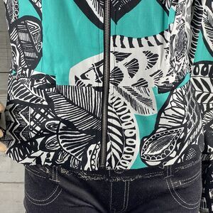 Chloe Madison Jacket Teal Black White Abstract Floral Print Full Zip